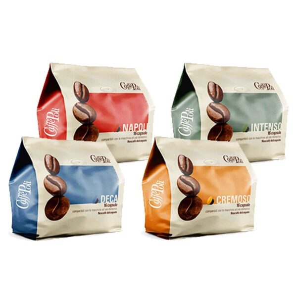 16 capsule Forte cremoso + 16 capsule Intenso aromatico + 16 capsule Decaffeinato + 16 capsule Napoli